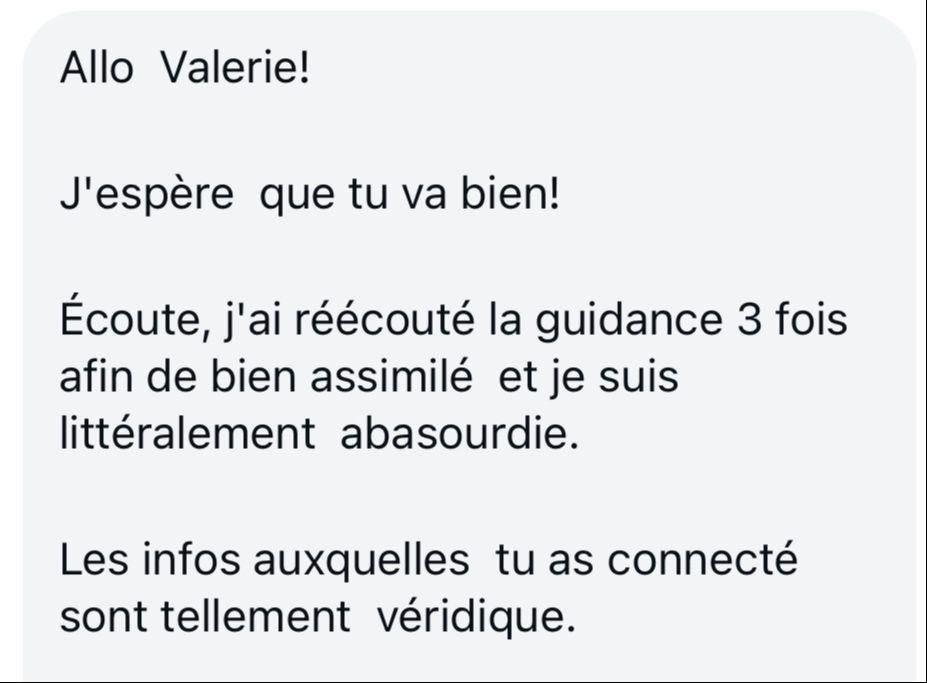 à savoir : Le délai d'attente actuel est de maximum 6 semaines pour recevoir ta guidance.