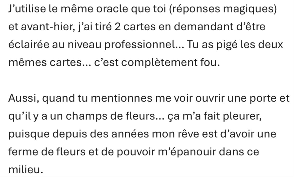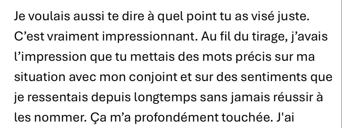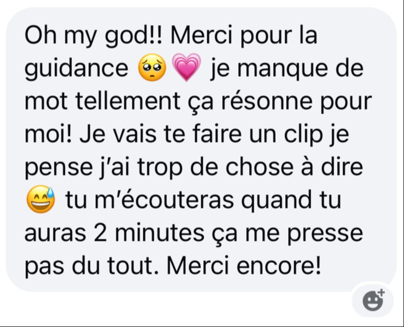 Je me connecte Ă ton Ă©nergie, mais aussi Ă lâhumain derriĂšre la situation.